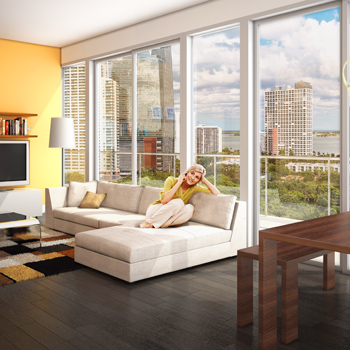 128 luxury ”move-in ready” residences including studios, one, two and three bedroom layouts, as well as nine expansive two-story townhome units, with floor plans ranging from approximately 554 to 1649 square feet in size. The development contains private balconies featuring sprawling park views and panoramic city views of the Downtown Miami/Brickell skyline looking out towards Biscayne Bay. Residents also have the additional option to purchase custom-designed Turn-Key Furniture Lifestyle Packages exclusively offered by Ligne Roset.